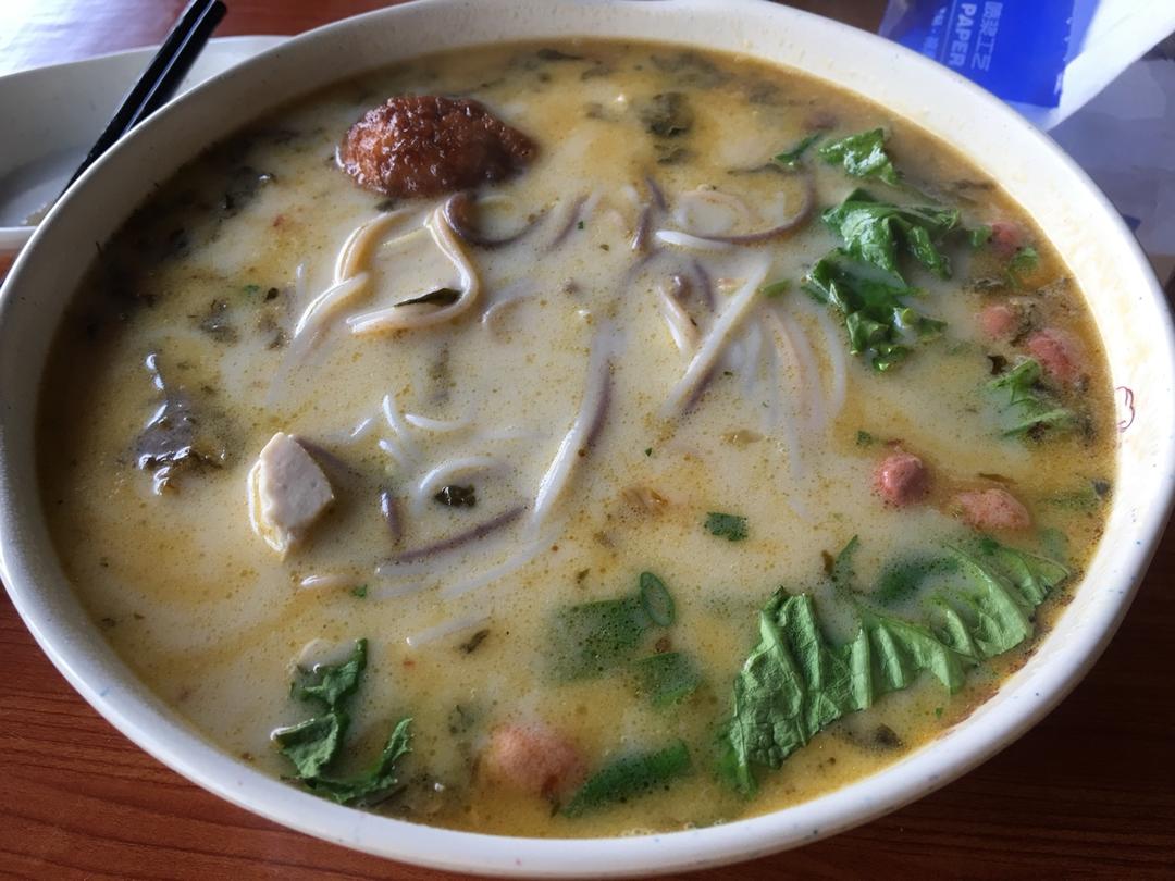 渔粉超级好吃!汤的味道很足,豆豆简直太美味了,酸菜包也很香,配一点金针菇,绝绝子!牛筋丸还不错,还以...