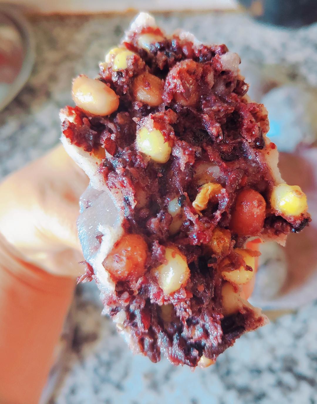大红豆包一个半斤 包的黑芝麻流沙包露馅了