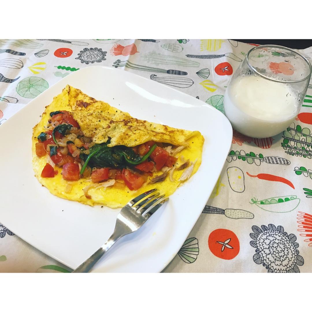 Leftover turkey omelette 最近一直喜欢吃华而不实但其实的确好吃 抖盘子有难度 #午餐•2016年...