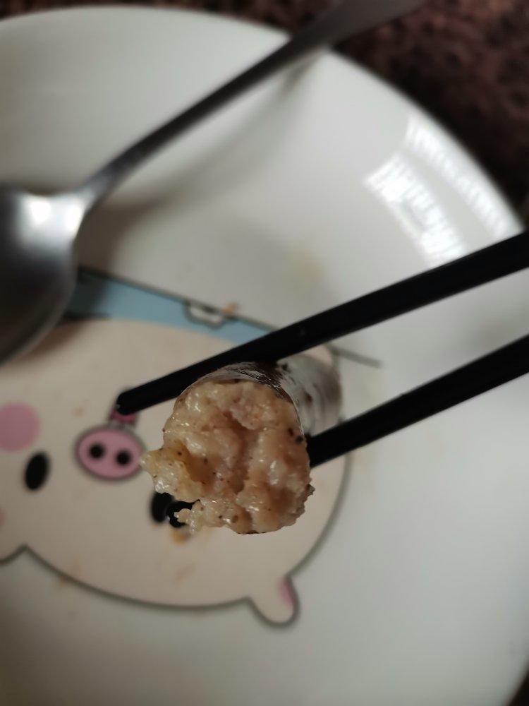 宝宝闹,断断续续手工搅拌了两小时,搅完后肉馅拍起来都是duangduang的,果然功夫不负有心人,煮好后直接吃就Q弹爆汁...