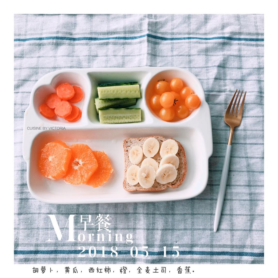 胡萝卜,黄瓜,西红柿,橙,香蕉,全麦土司。