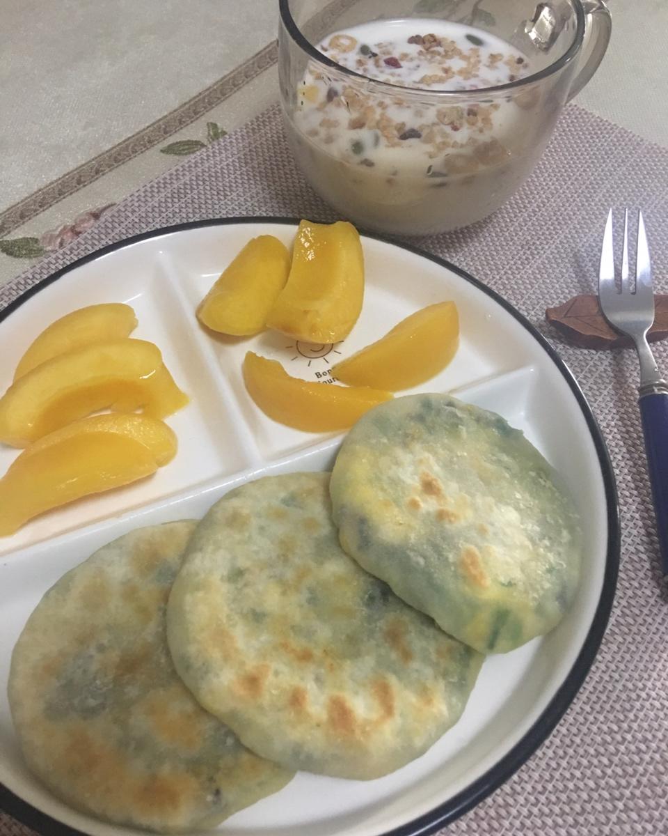 韭菜鸡蛋木耳豆腐排叉馅儿的素馅饼,剩下的面烙饼。