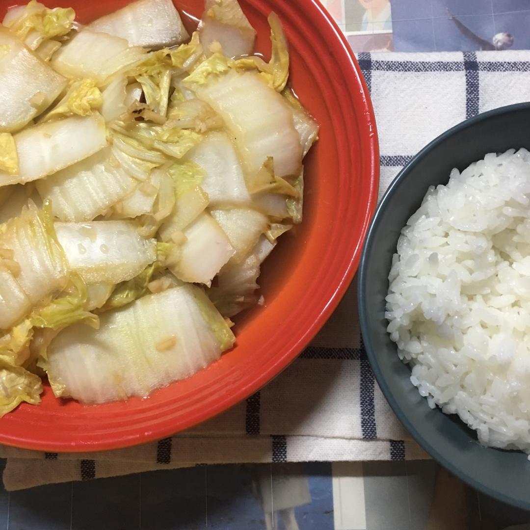 抖音上教的方法,准备蒜片+干辣椒,调料是生抽、陈醋2:3比例+1勺淀粉,放油先炒蒜+辣椒,炒白菜...
