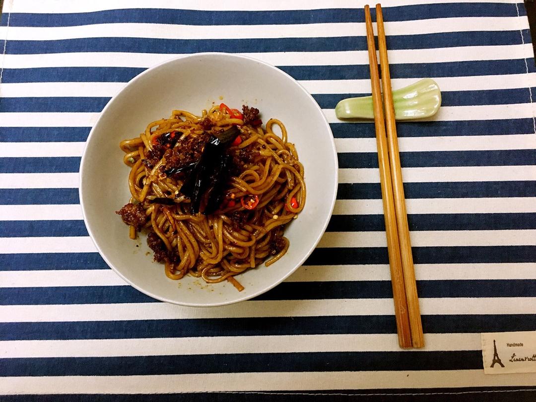 川版小米辣拌面,配合肉臊~好吃到旋转