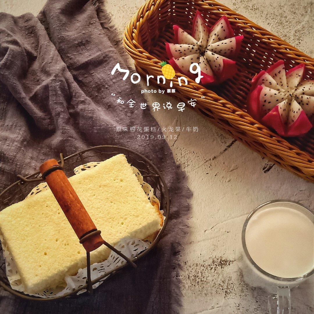 今日早餐:原味棉花蛋糕,火龙果,牛奶。#...