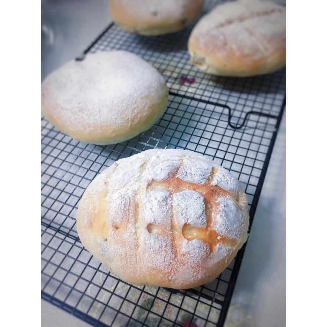 感觉今天早上发的波兰种发酵时间不够,面包体口感有点欠缺,下次还是冷藏过夜吧😄