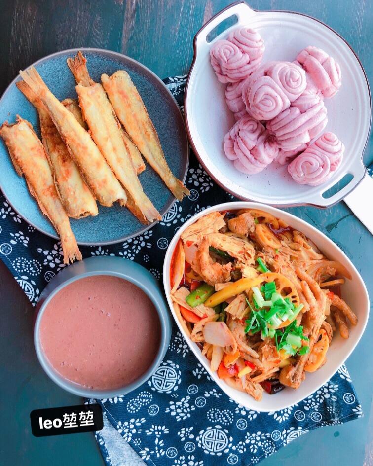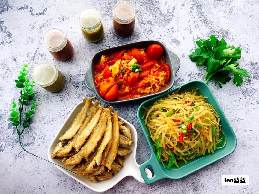 午餐时间!没准备青菜,青菜叶子凑活摆拍一下!