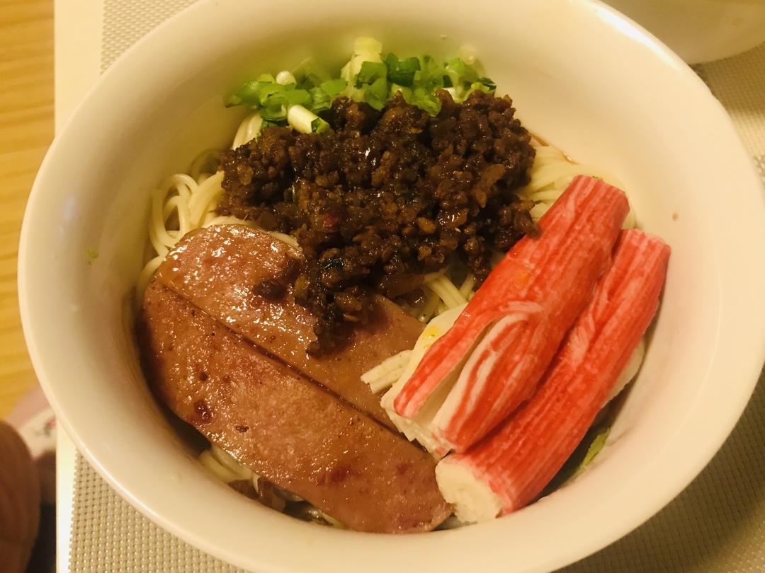 杂酱、蟹棒、午餐肉 家常面