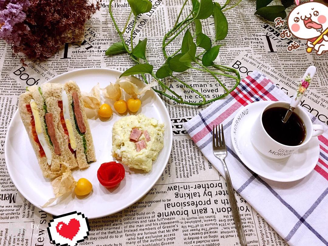 土豆泥沙拉,美式咖啡☕️,
