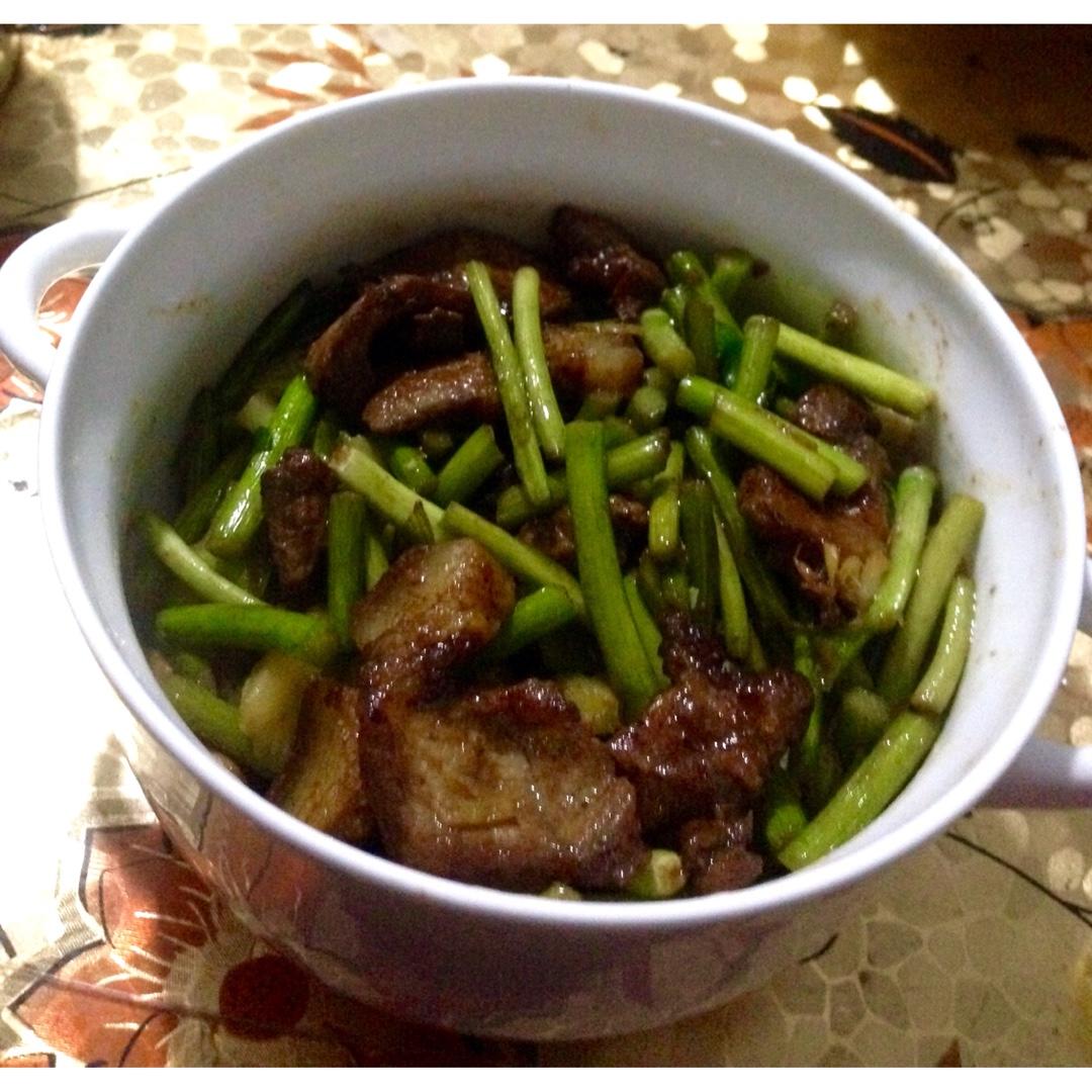 蒜薹炒酱油肉片,今天把腌制三天的酱油肉晾晒了,还做了点泡菜,放的辣椒有点少白菜没提前出水所以汤汁有点多,味道还是不错滴…...