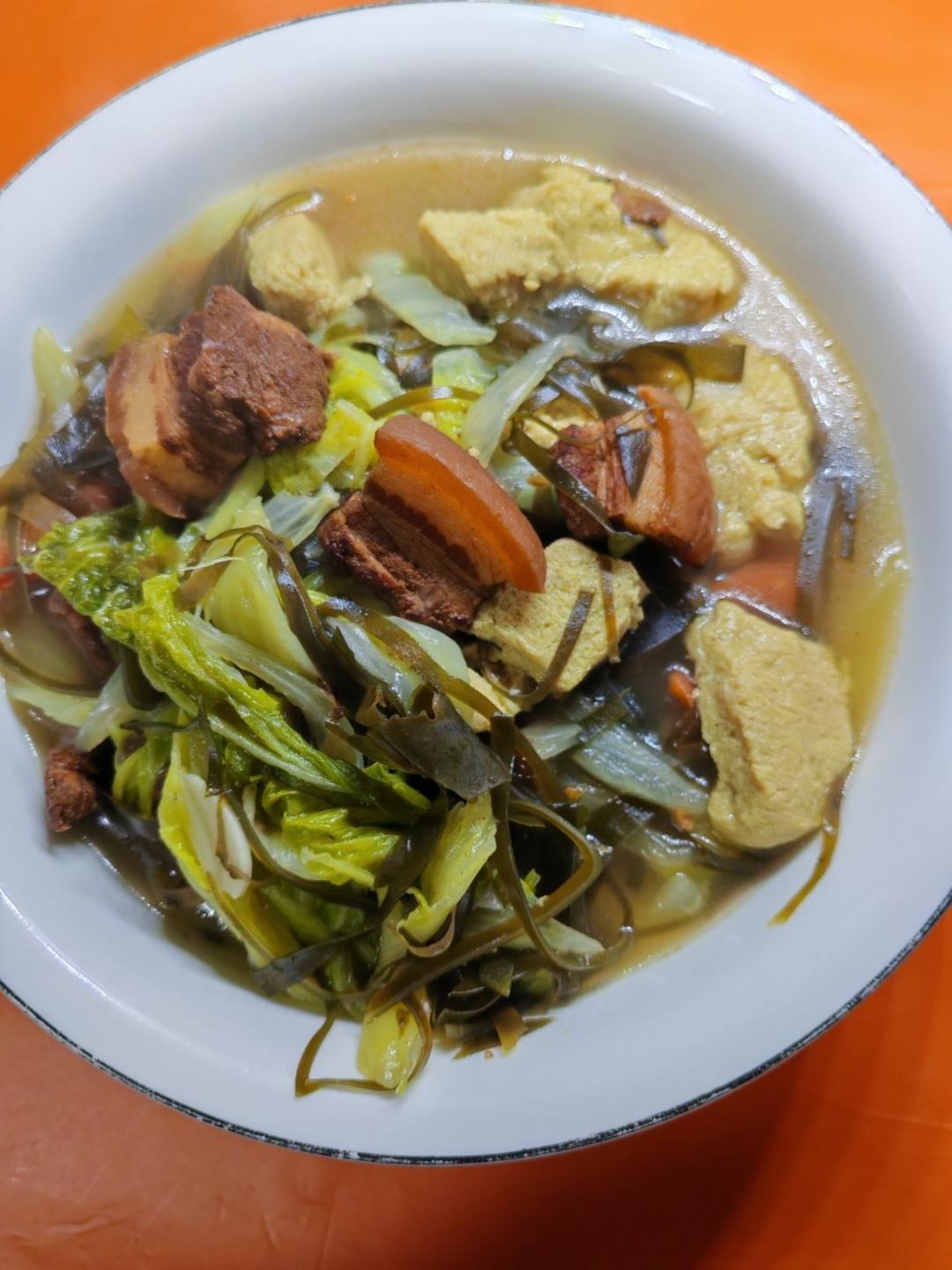 晚餐:乱炖 之 海带白菜🥬炖红烧肉🐷冻豆腐。