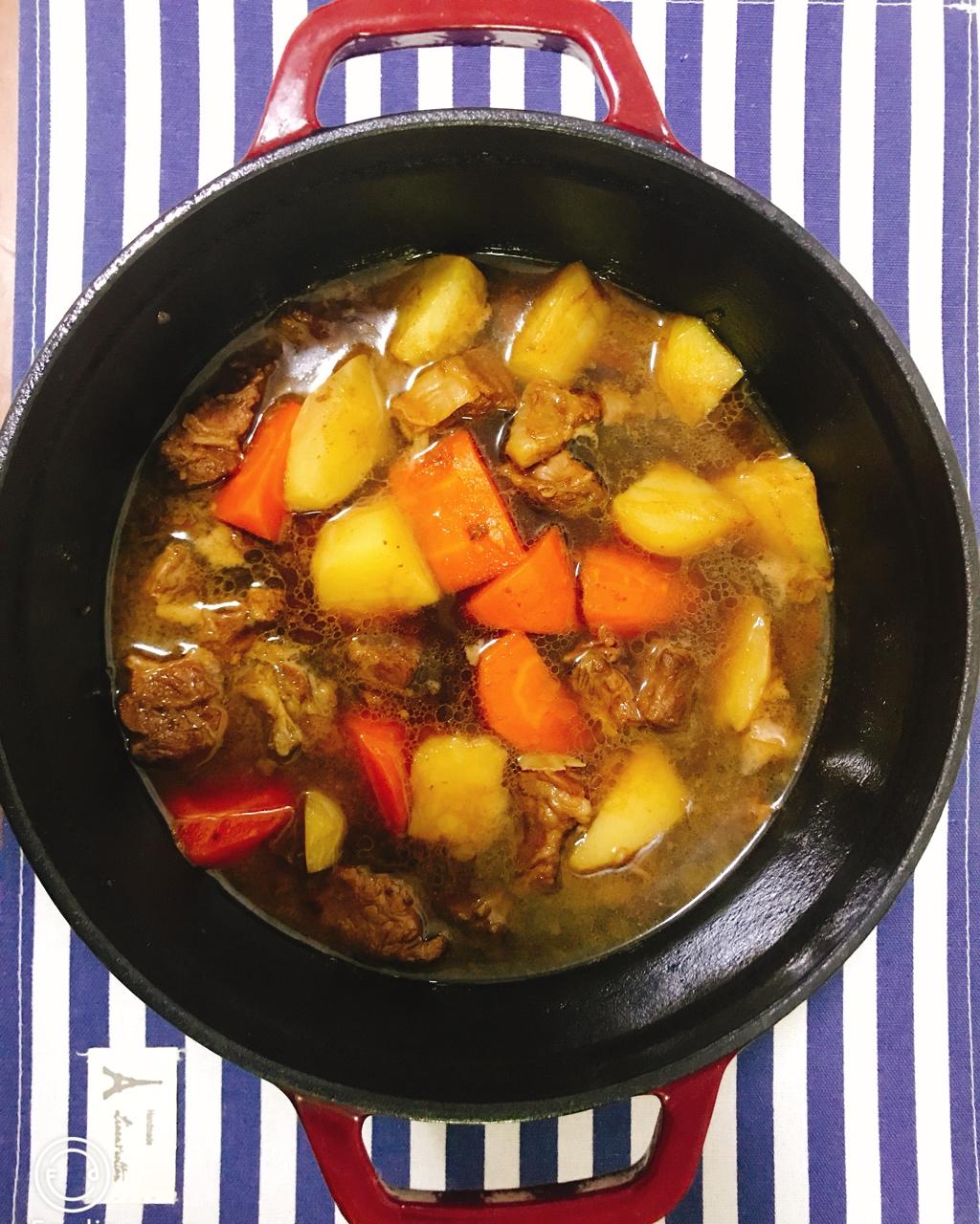 第二次用珐琅锅,终于好像摸到窍门。土豆胡萝卜烧牛腩,好吃得不得了,小朋友破天荒吃了八块肉,开心极了! #晚餐•2018年...