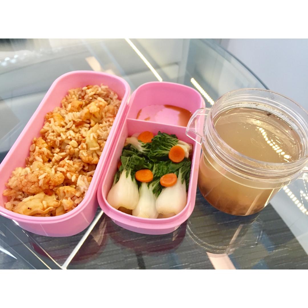 米饭拌到番茄菜花的汤汁里,一口气吃完这一盒🙄