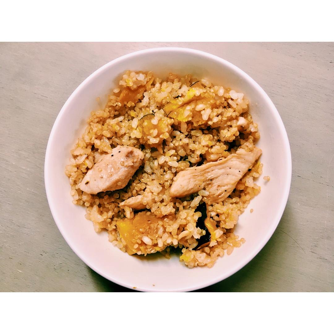 真的好好吃!! 加倍了米和肉:糙米300g,藜麦130g,鸡肉450g,南瓜500g,生抽两勺,老抽一勺。减脂期最爱! ...