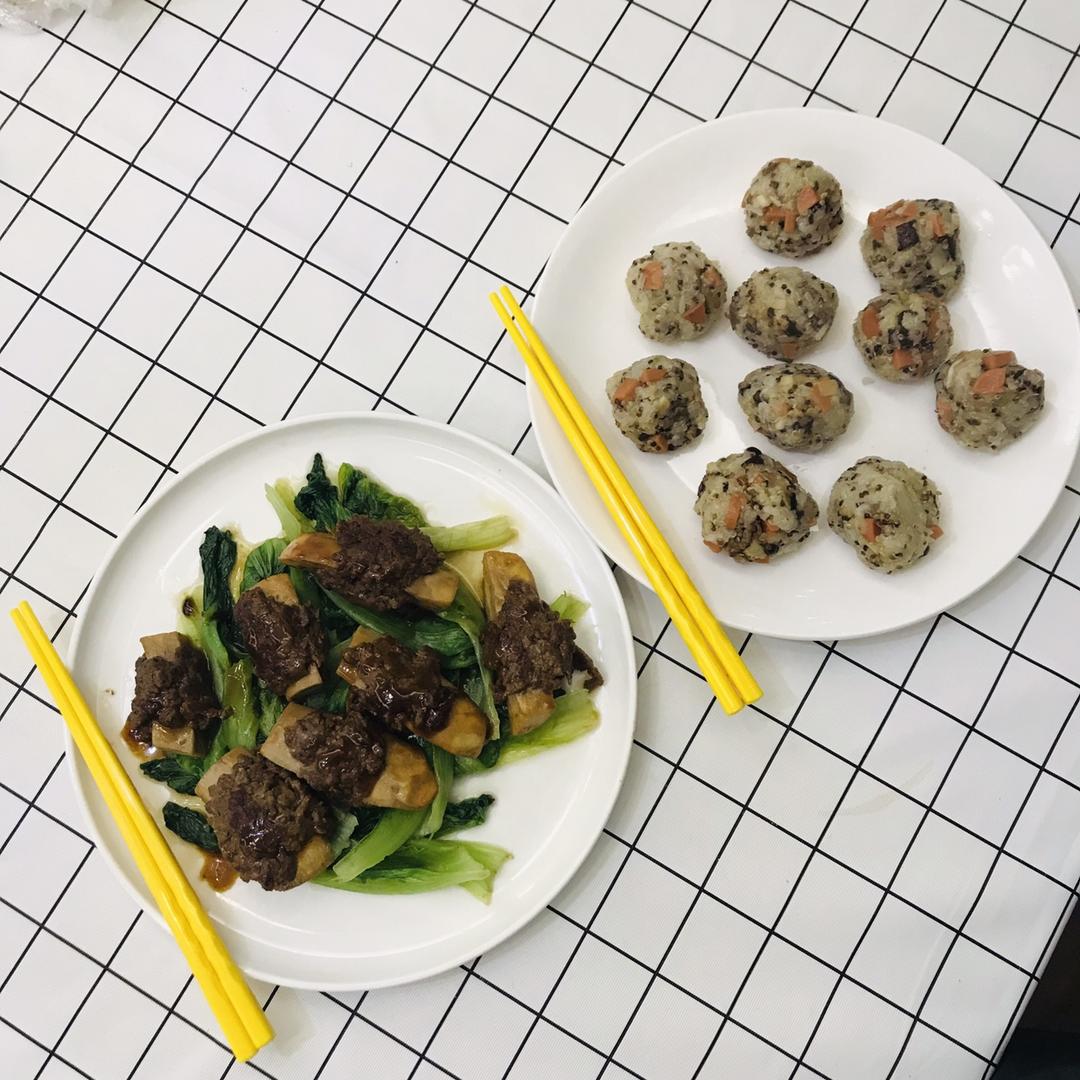 香肠土豆胡萝卜茄子焖饭 & 番茄金针菇豆腐肥牛锅