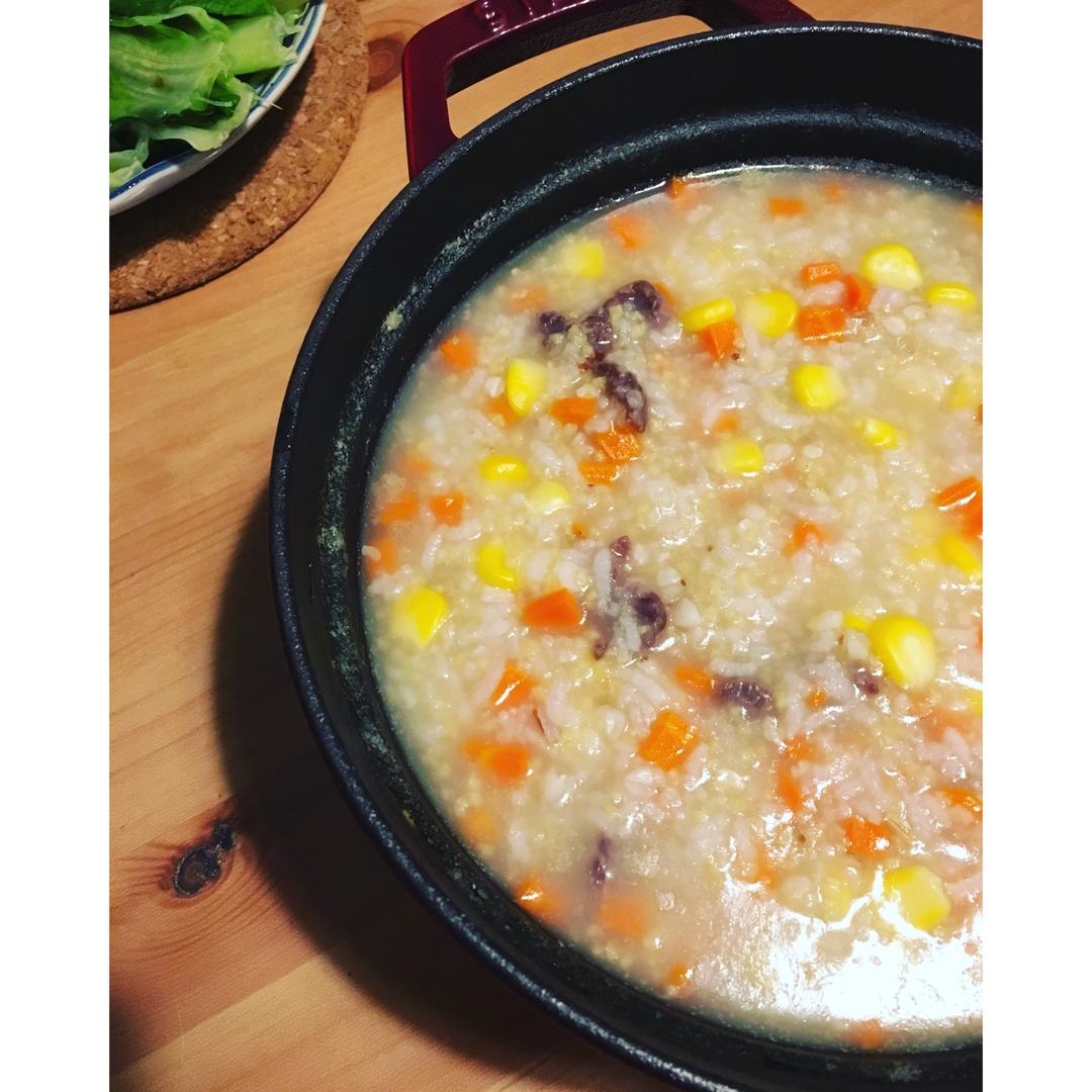 胡萝卜玉米粒牛肉粥