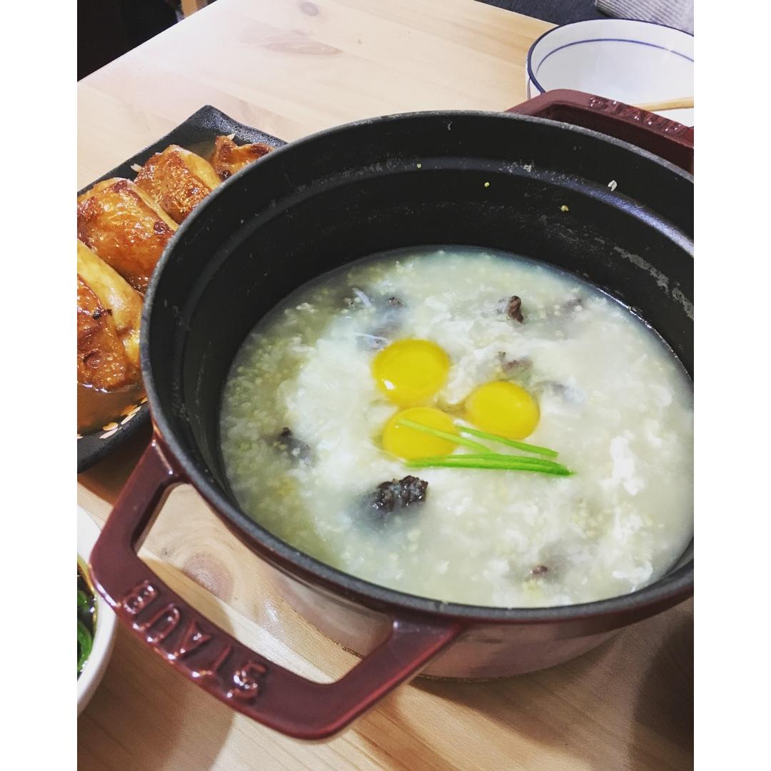 窝蛋牛肉杂粮粥,红焖鸡腿