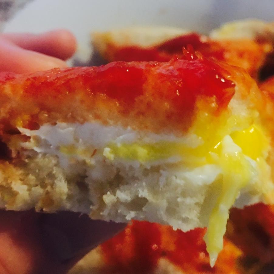 味道一般……微波炉热了两分钟,面包变得很湿很软,口感不怎么好。