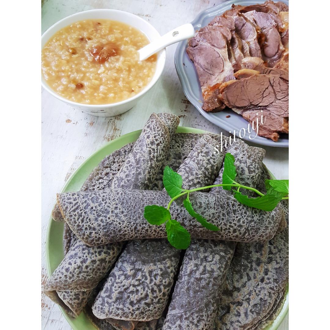 三黑软饼(黑米黑豆黑芝麻) 桂圆肉杂粮粥 驴肉