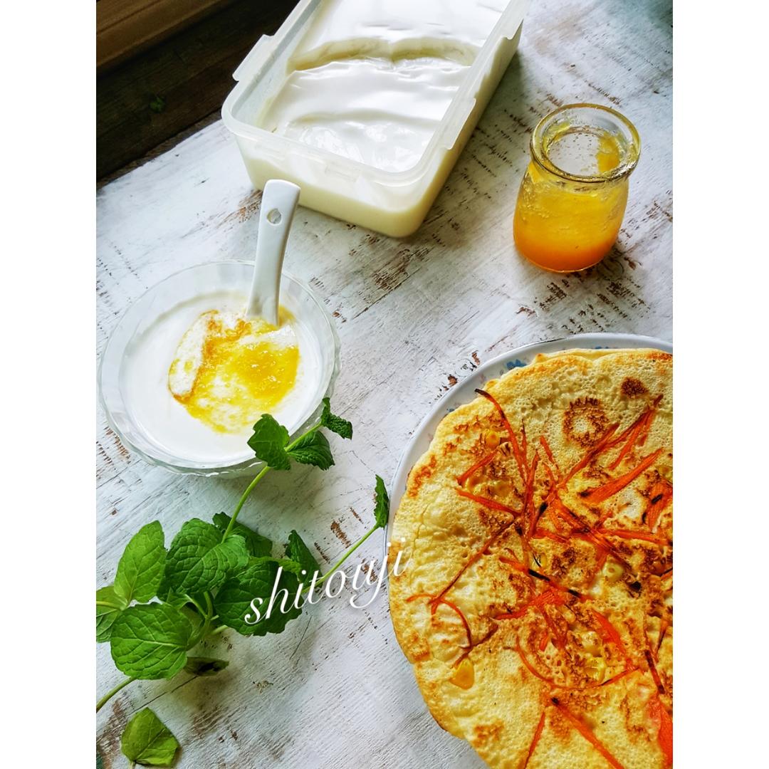 红薯玉米软饼 菠萝酱酸奶