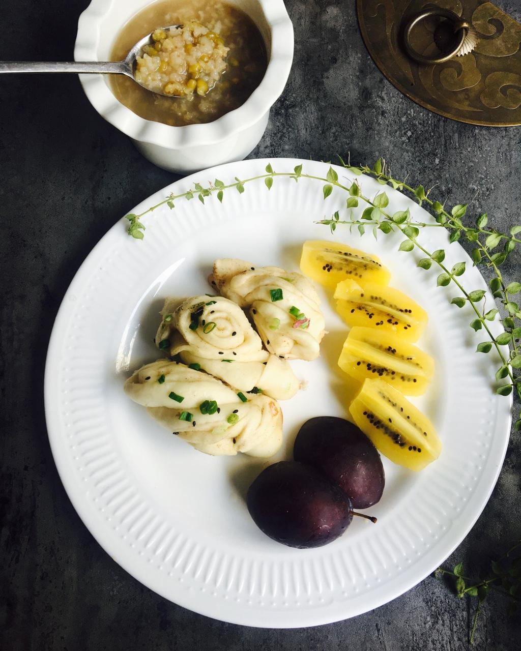 一口气干了三😋早餐最钟意快手又美味的食物了,喝一碗绿豆小米粥,啃几个水果,友友们用餐愉快🍴 #早餐•2018年8月27日...