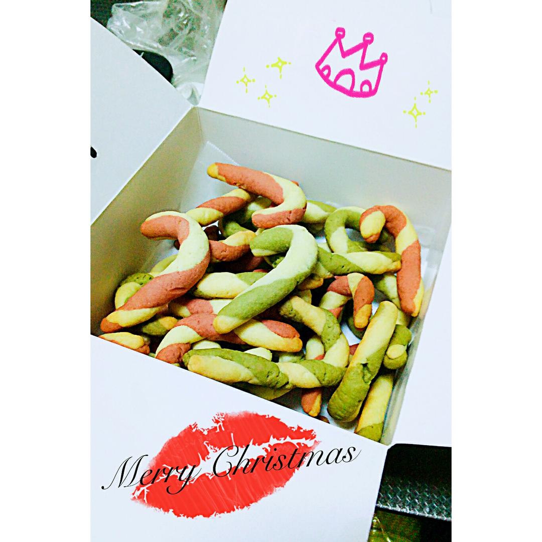 拐杖饼干,真的很酥。用了红曲粉和抹茶粉代替了色素。健康,纯真……