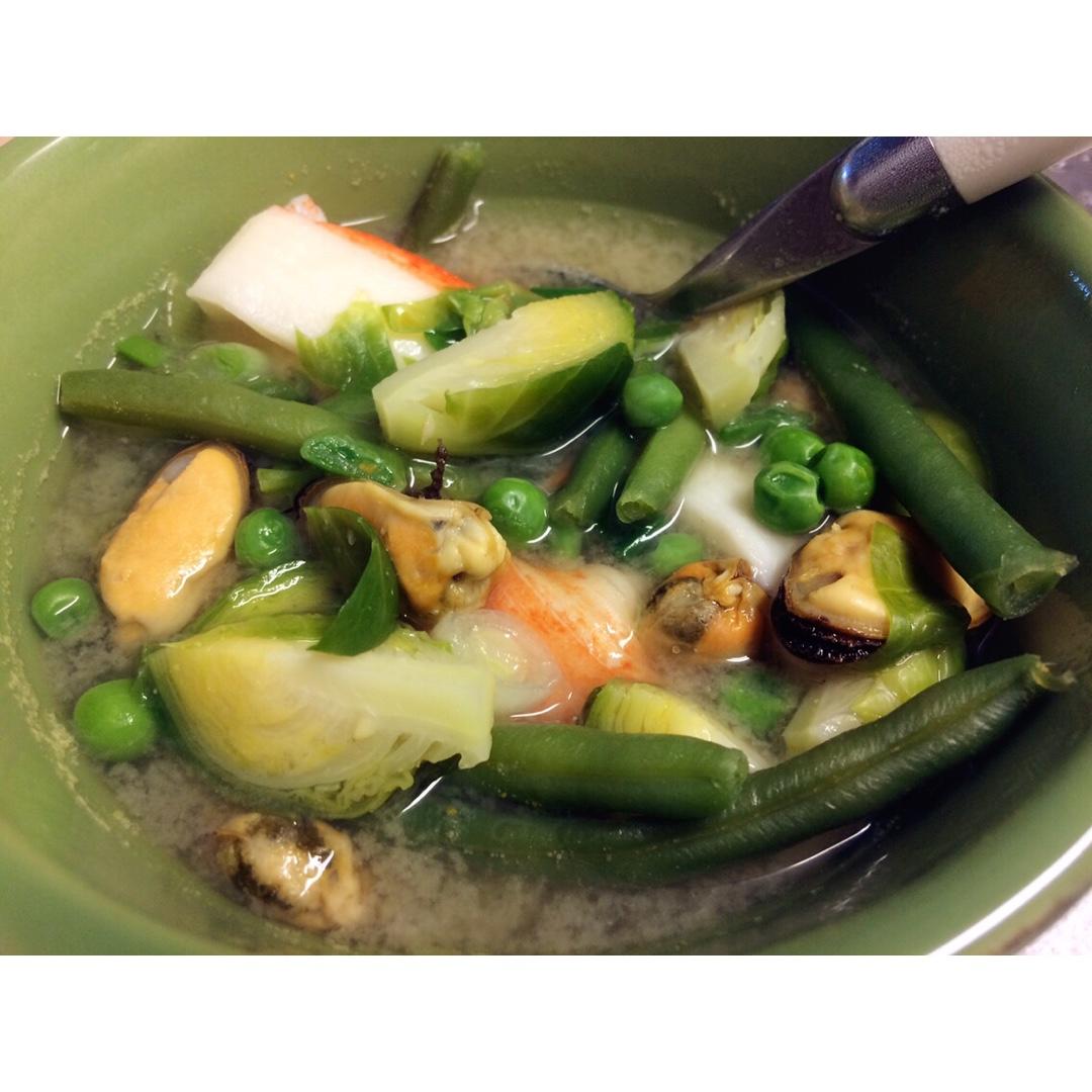 最近几天的中午都有蔬菜海鲜汤和地瓜