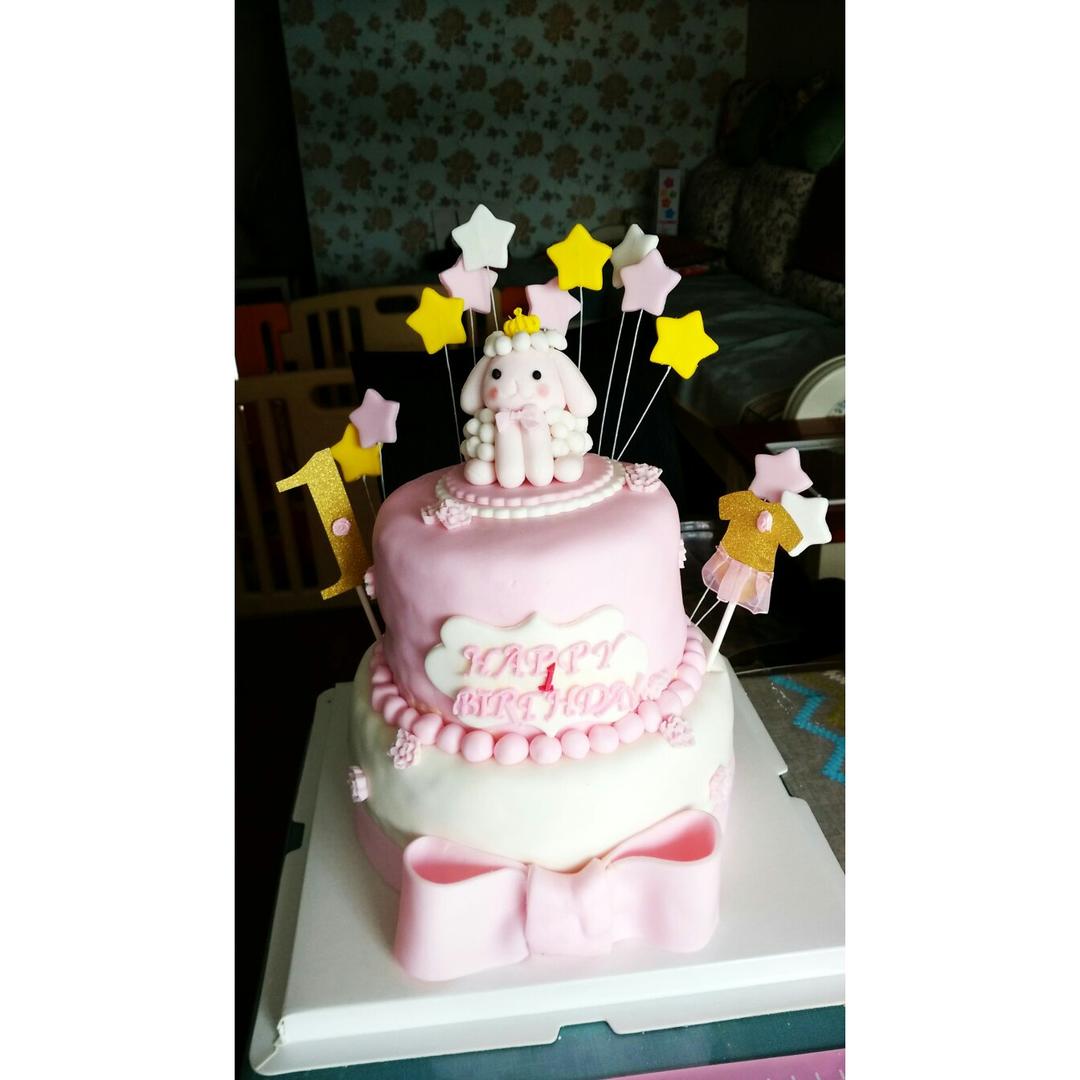 #给女儿做的周岁翻糖蛋糕#