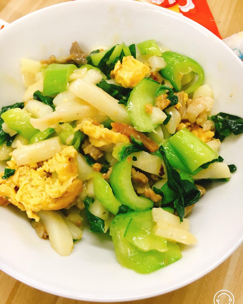 中午就来个菜心炒年糕,天台的年糕有劲道,可以和各种菜搭配着烧,各种好吃😋😋😋