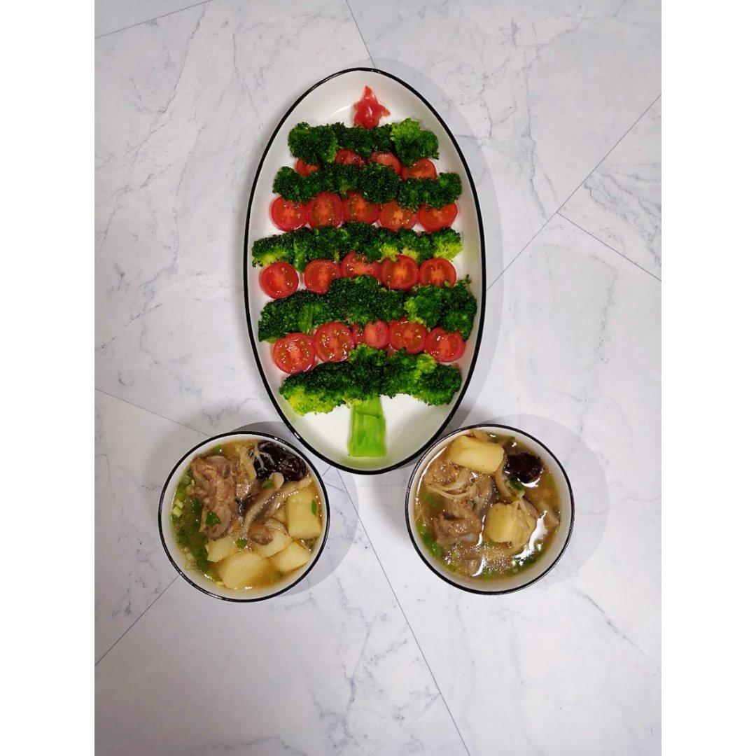 圣诞快乐一:红枣山药排骨汤+绿色圣诞树+圣诞饼干糖果~总把我当小孩╮(﹀_﹀)╭