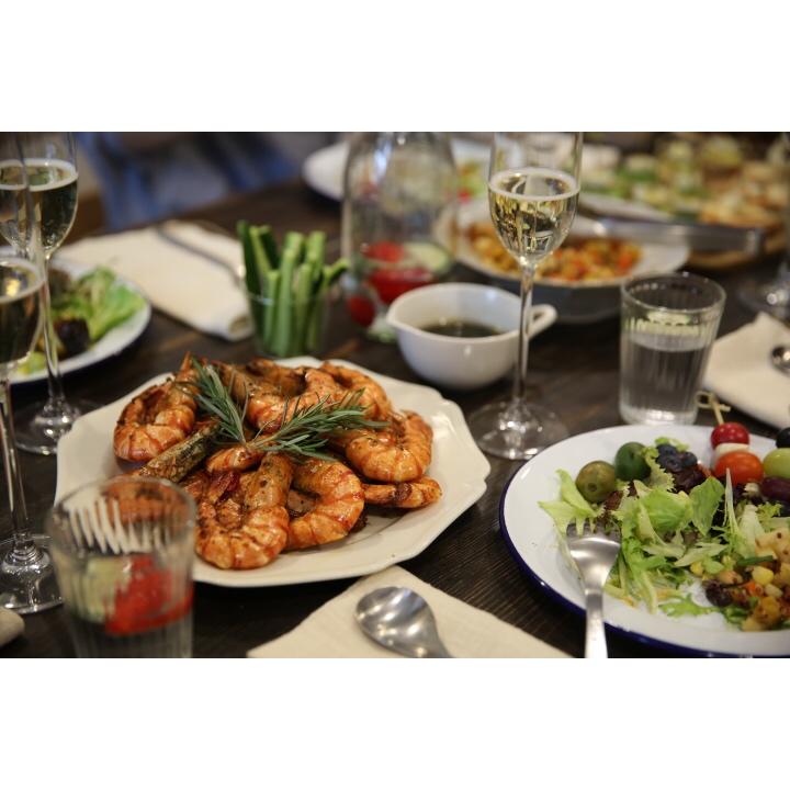 急着开吃被嫌弃拍的太渣~~混搭料理~坦督里烤鸡腿,香草大虾,白酒青口,红酒炖牛尾,鸡丝冷面,忘了煮鸡蛋的尼斯沙拉,热红酒...