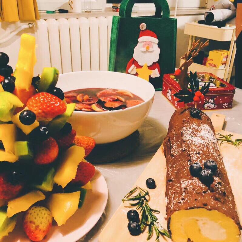 烤鸡+树桩蛋糕+水果塔+热红酒