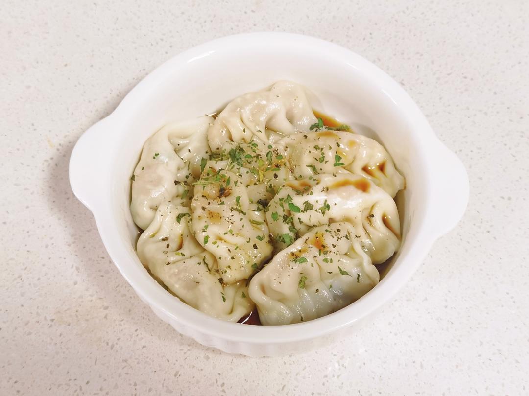 饺子+酱油+醋+欧芹碎+黑胡椒碎,味道层次顶级!!爱了爱了
