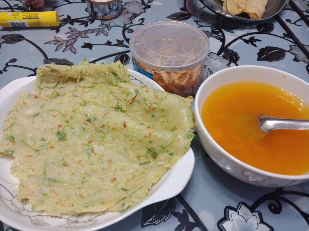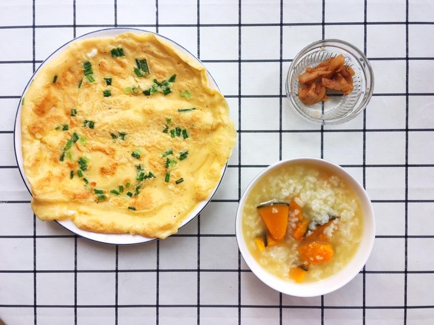 起晚了,差点就粥就咸菜了。饼弄的有些麻烦了,味道还不错。南瓜粥是要放盐滴。木瓜蒸的时间略长。