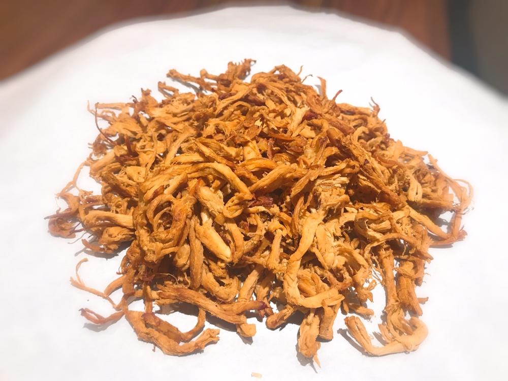 烘烤过的鸡丝口感类似的肉松丝,当零食不错!
