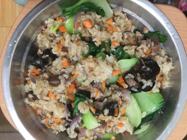 牛肉洋葱胡萝卜木耳青菜,米饭有四分之一的糙米,健康营养!