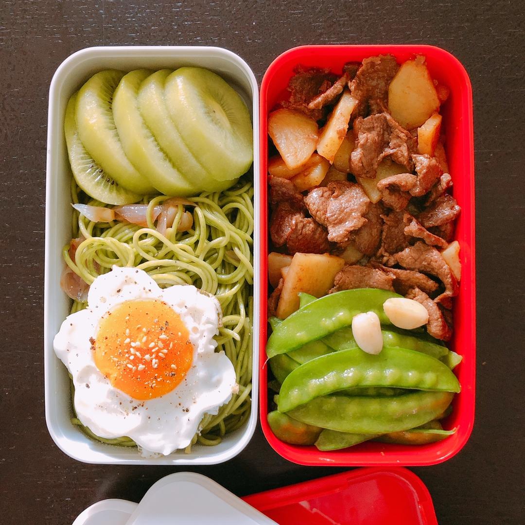 第十周第三天,由一个煎厚扒引发出的午餐便当😅,即兴发挥也挺不错的,搭起来也很好吃😋,做一顿分两盒,两天吃~#午餐•201...