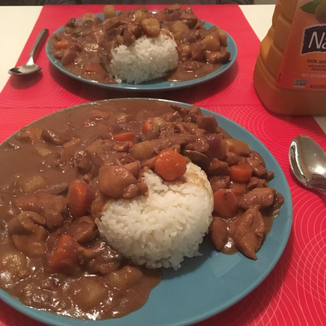 这四周环绕/浮于米饭上方的满满咖喱…………我当然是吃不完这份的🤣还加了些全脂牛奶,提香~