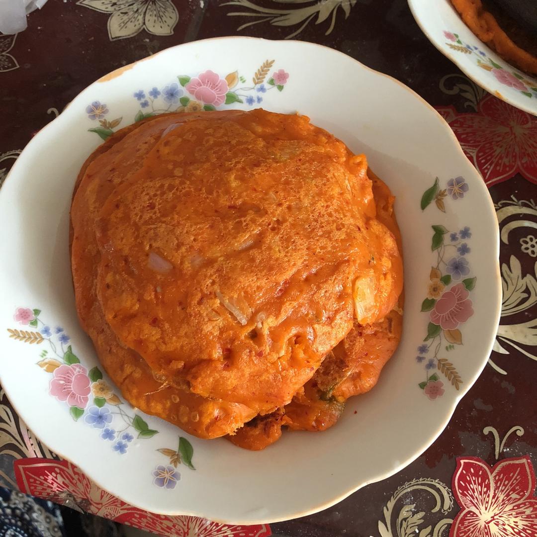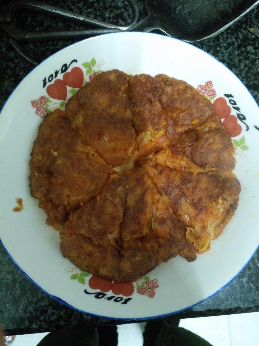 辣白菜饼,鸡蛋放多了