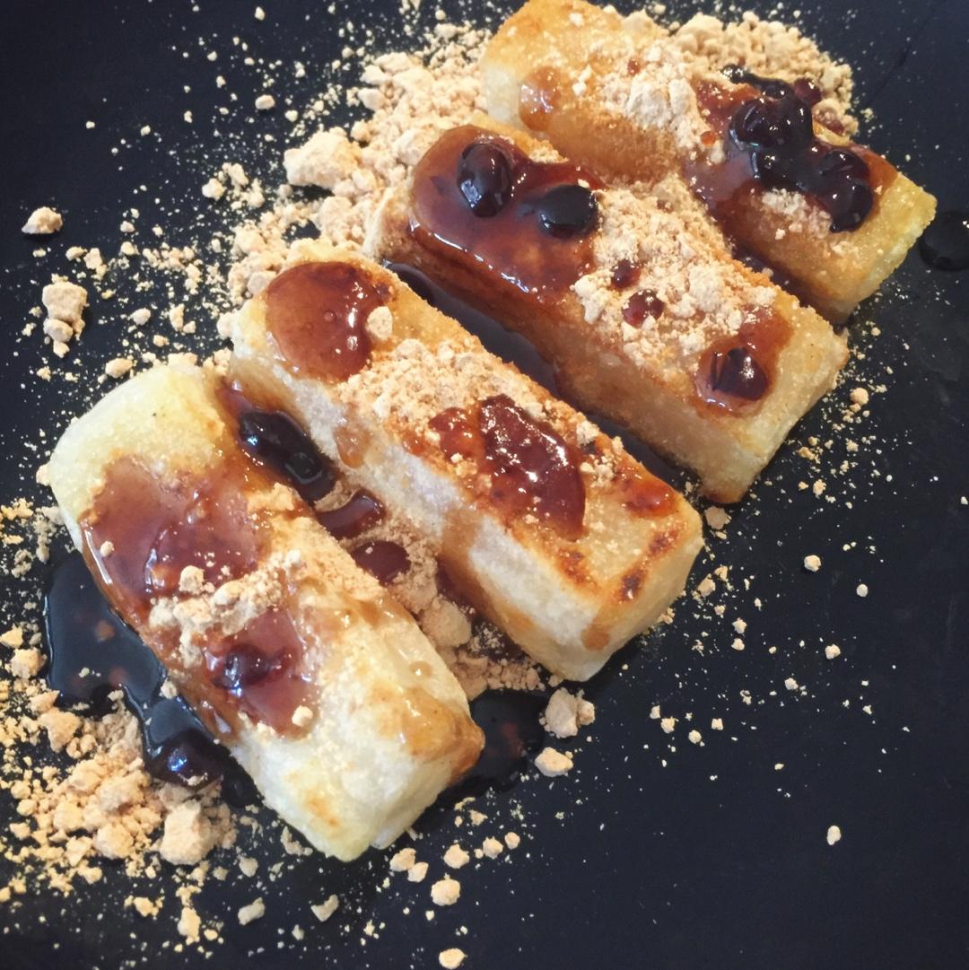 红酒加糖煮的梨和红李子做topping,一个人吃掉大半个太爽了,一定要趁热吃!