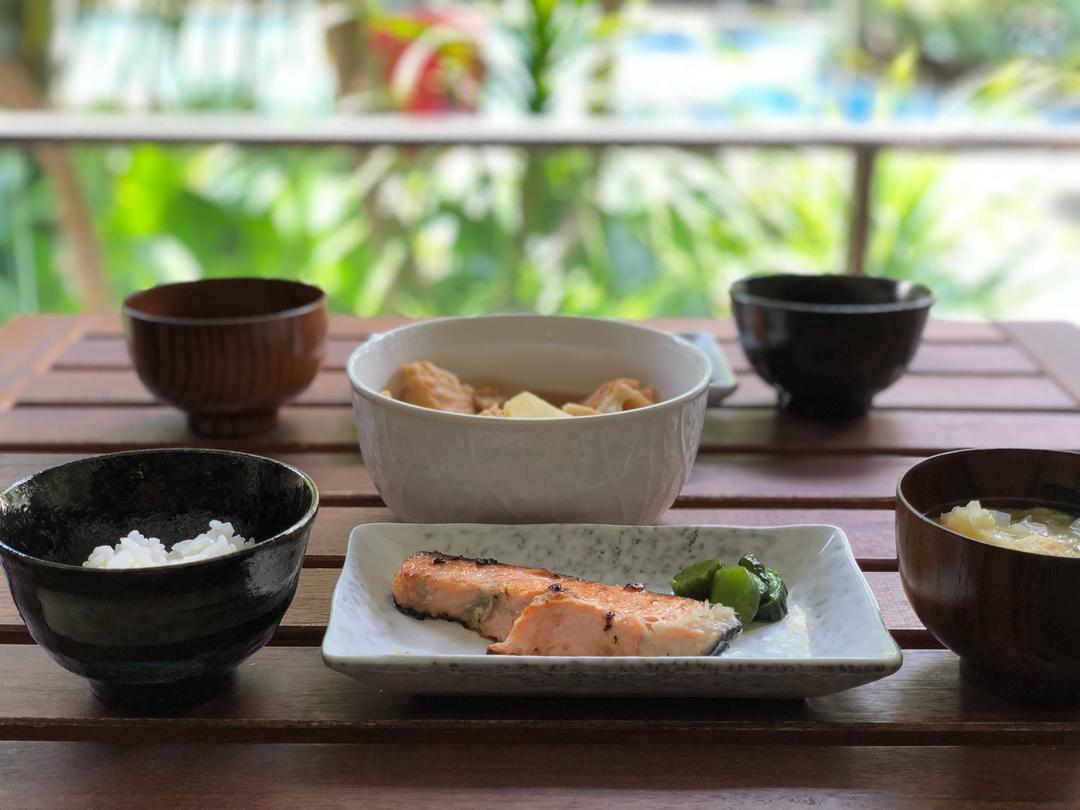 :Grilled salmon & pork miso soup...