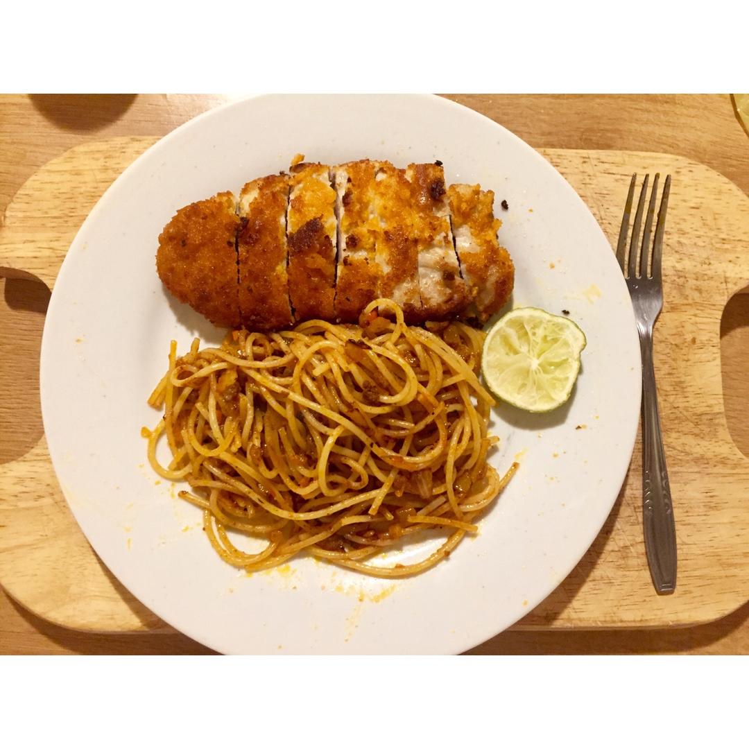 炸猪排➕番茄肉酱意面