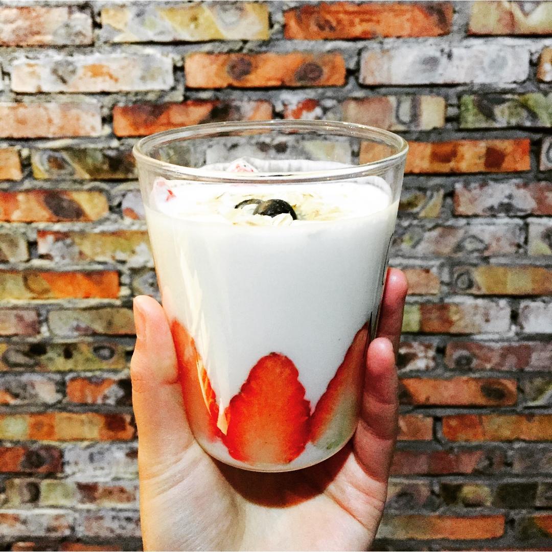 网红早餐-燕麦草莓酸奶:)我怎么会告诉你其实还有蓝莓呢……