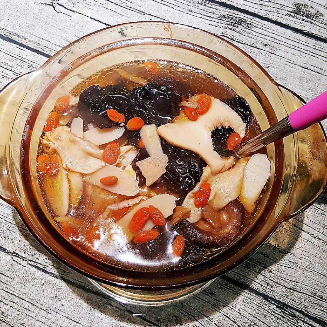今兒下廚燉了一鍋花膠響螺雞湯。除了童子雞、花膠和響螺片外,還加入了花菇、山藥和黑木耳...