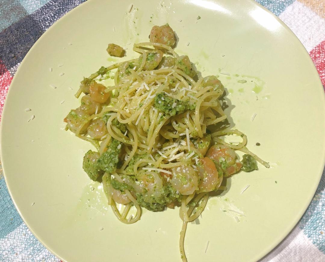 虾仁青酱意面