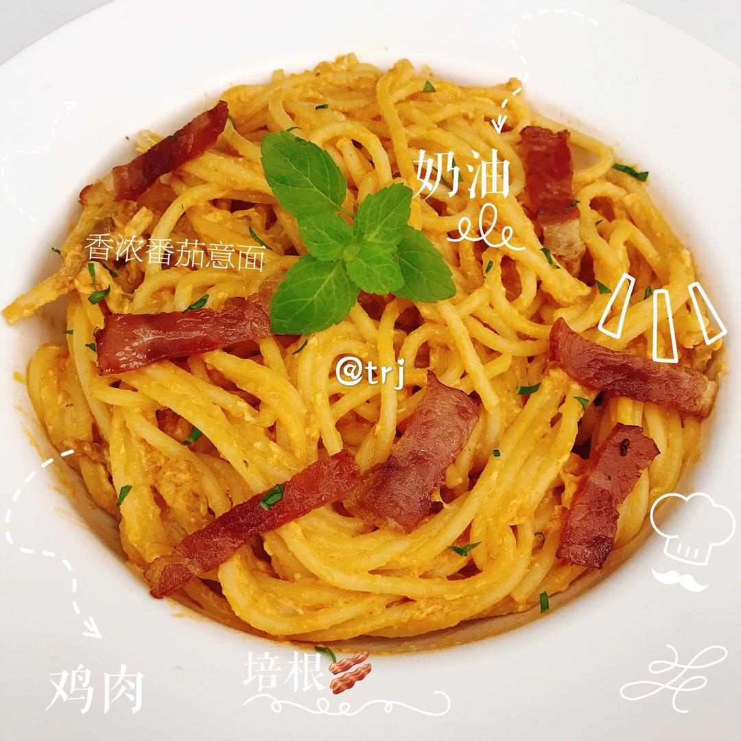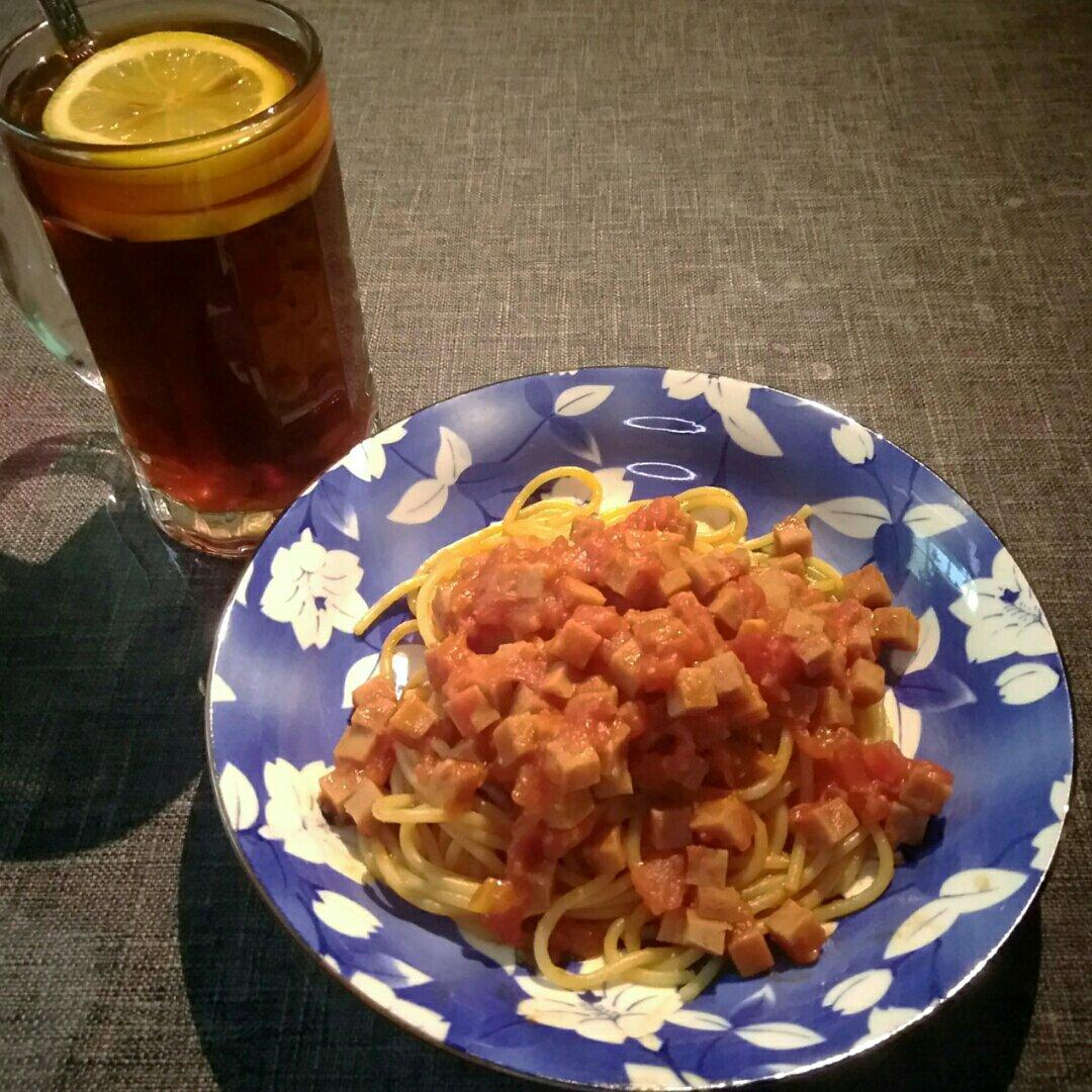 第一次煮意面🍝,加点番茄🍅肉酱、蒜粉、几勺番茄酱、奶油,酸酸酸,好吃好吃😋😋😋#意大利...
