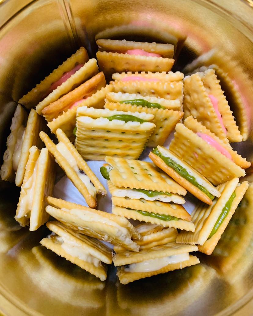 剩了点棉花糖,就想快快做一下试试哈哈还不错超市随便买的苏打饼干,还行就是易碎