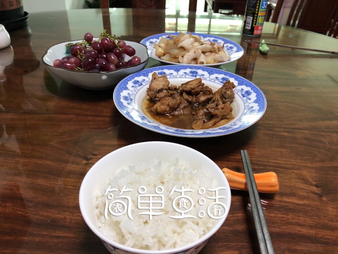炖鸡汤、牛肉炒木耳丝