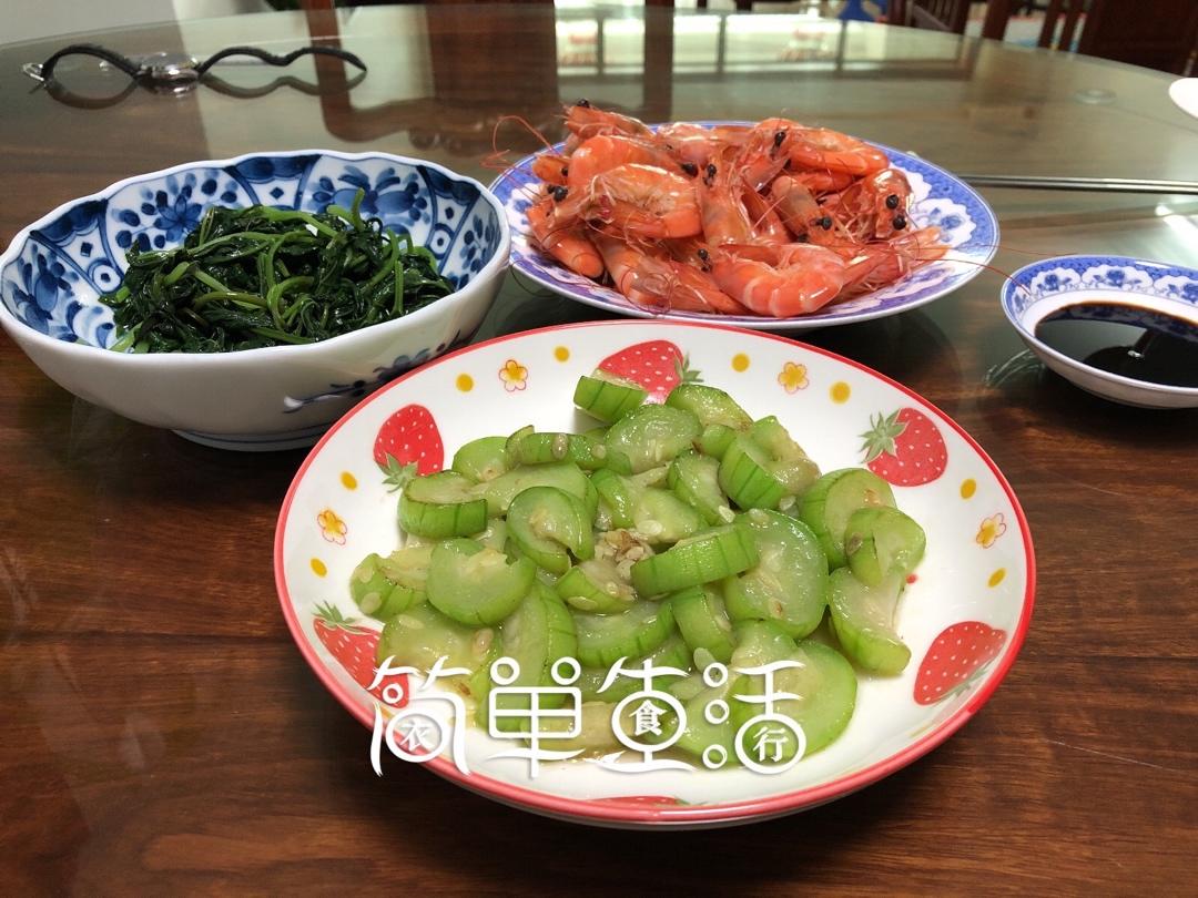 二人三菜:鲜虾仁炒木耳,焖豆,清炒芦笋