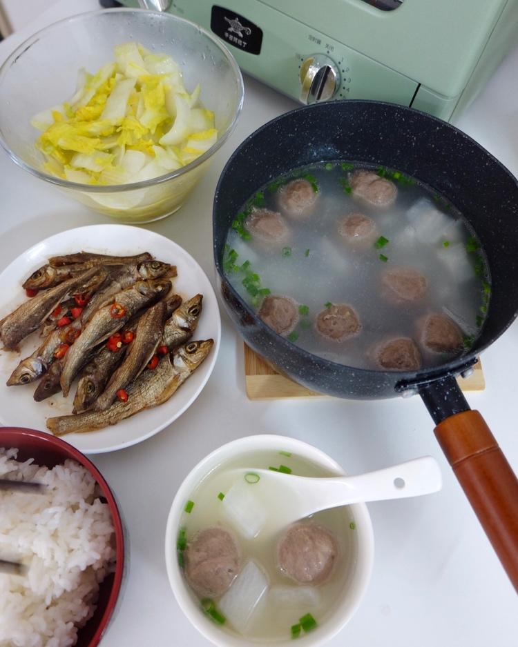 牛肉丸萝卜汤+火焙鱼